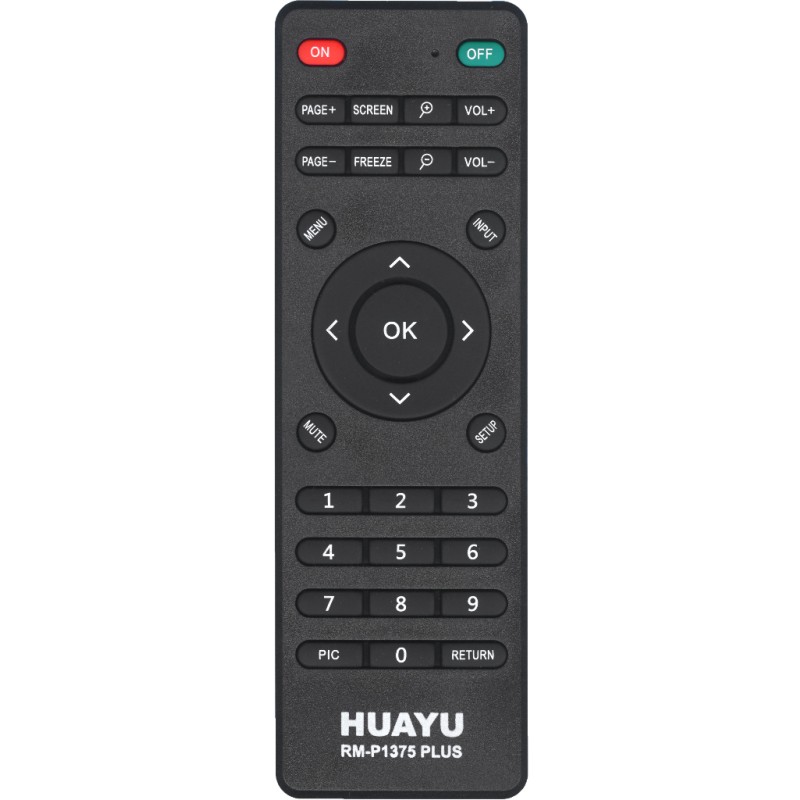 Универсальный пульт Huayu RM-P1375 (для проекторов с функцией обучения) – это универсальный пульт, который заменяет множество пультов определенного бренда. В основном эти пульты не требуют настройки, просто вставили батарейки и пользуетесь, но иногда, когда настройка все-таки необходима, она сводится к нажатию всего двух клавиш. Из чего можно сделать вывод, что им могут пользоваться даже люди далекие от электроники. Его корпус очень часто совпадает с корпусом вашего родного пульта, поэтому у вас не будет привыкания к расположению на нем кнопок. Все они находятся на привычных местах.